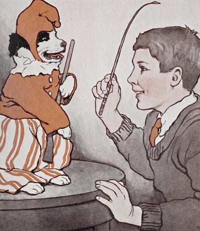 The first time he came he brought a little whip just like his own for Tommy, and he brought a little barrel striped red, white and blue, and it was my own little barrel that I used to act on. There were one or two tricks I couldn’t do at home because we hadn’t the things, like the jumping-board act and the fire act, but Mr. Bonelli showed Tommy how to put me through almost all the others. Tommy was pleased, and so was I. I grinned and grinned.