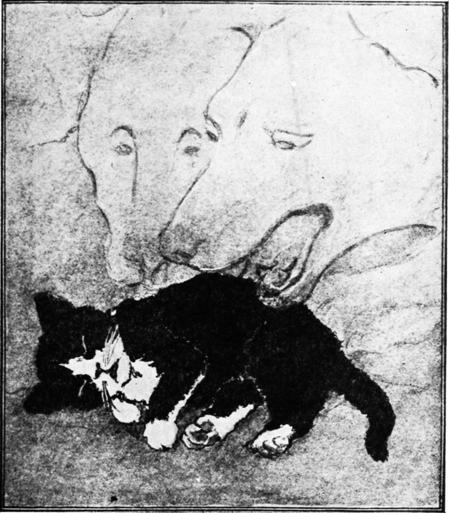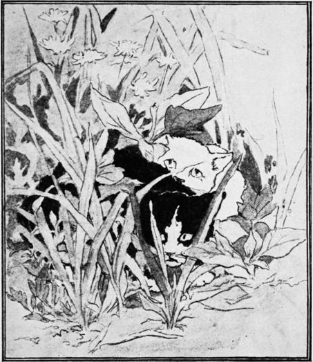 The next moment the kittens stopped short, their little hearts leaping with terror. Something was moving stealthily among the weeds at the roadside. A dead twig cracked. There was a sound of breathing, and a gleam of big yellow eyes.
