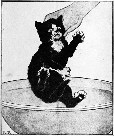 Jazbury was frightened at the thought that such a thing might happen to him, too, if he didn't keep himself clean, and he set about washing himself in earnest. First he washed his paws, and after he had cleaned them he cleaned his face, licking his paw with his little pink tongue, and curling it round over his furry little cheeks and forehead and chin and even behind his ears. By breakfast time he was clean enough to be allowed to eat with his mother and Aunt Tabby.