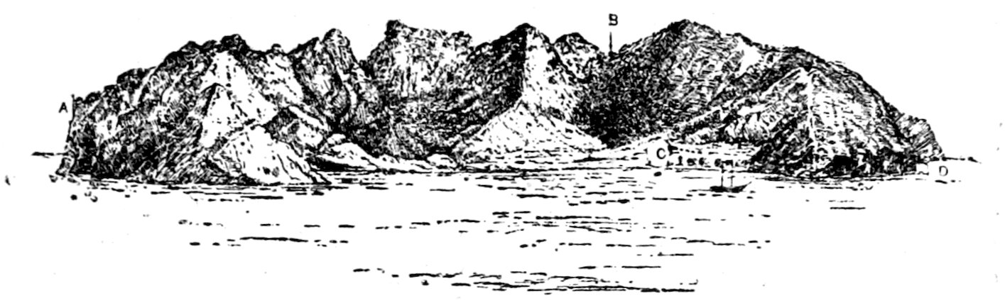 25. An island was reported in lat. 27° by an English buccaneer named Davis in 1687. It was, he said, five hundred miles from the coast of Chile, low and sandy, and some twelve leagues to the west of it was seen “a long tract of pretty high land.” The description in no way applies to Easter, with which it has sometimes been identified. The probability seems to be that Davis was out of his reckoning, as was by no means unusual in the case of the early mariners, and it has been suggested that the island he saw was Crescent Island, the high ground in the distance being the Gambier group. The latitude of Easter Island is 27° 8′ S., that of Crescent Island is 23° 20′ S.
