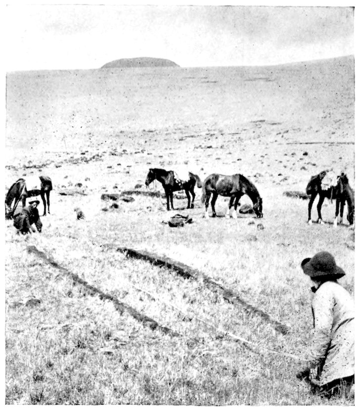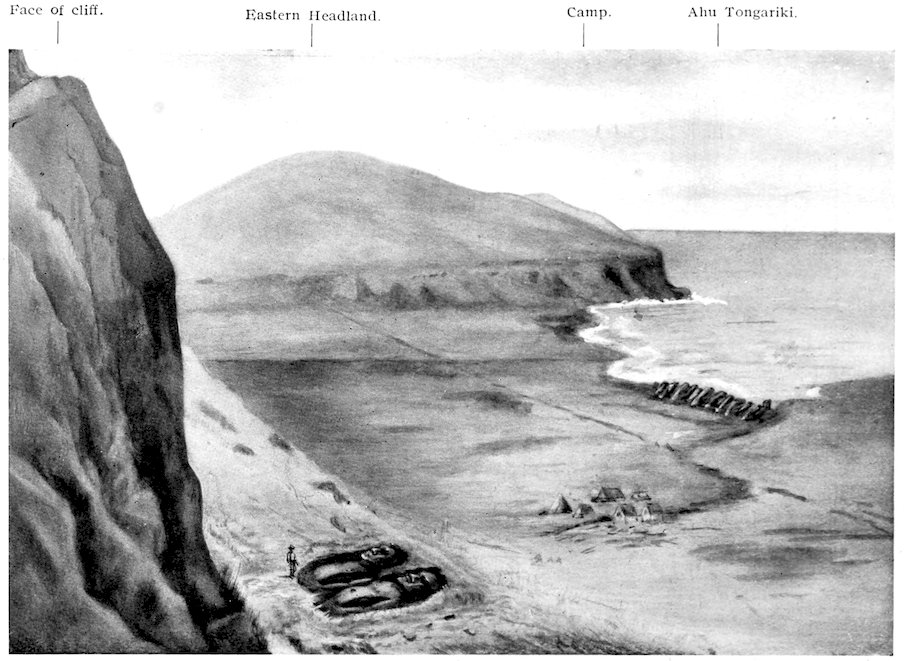 For those who would have preferred more scientific and fewer personal details, I can only humbly say wait, there is another volume in prospect with descriptions and dimensions of some two hundred and sixty burial-places on the island, thousands of measurements of statues, and other really absorbing matter. The numerical statements in the present book, dealing with archæological remains, must be considered approximate till it has been possible to go again through the large collection of notes.