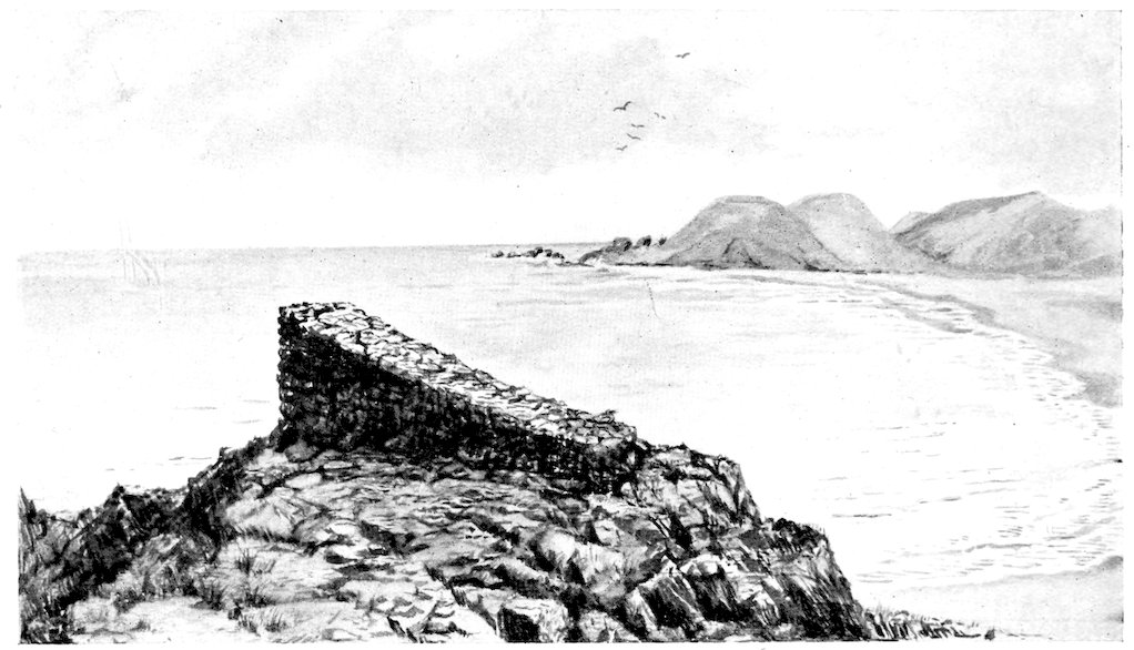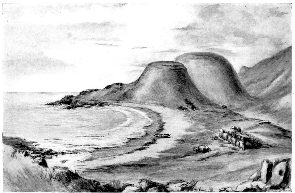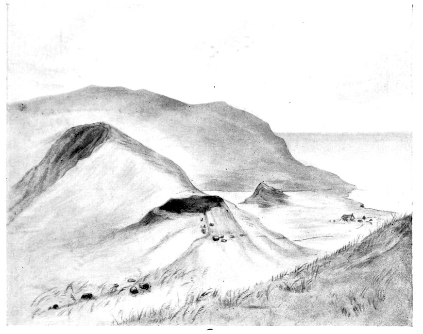 50. The outermost of the three hillocks on the eastern volcano on which the Spaniards set up the crosses in 1770. Half of it has been worn away by coastal erosion (fig. 78).
