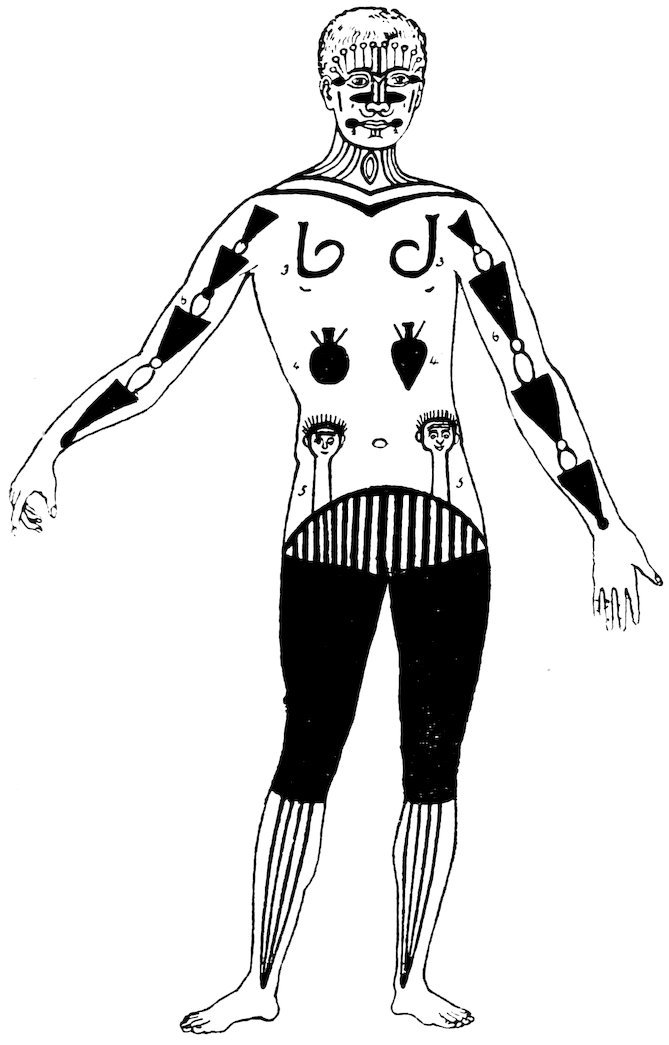 66. Those unacquainted with the manner in which the drawing of a natural object can, through constant repetition, lose all resemblance to it and become purely conventional are referred to Evolution in Art, by Dr. A. C. Haddon.