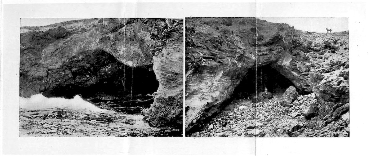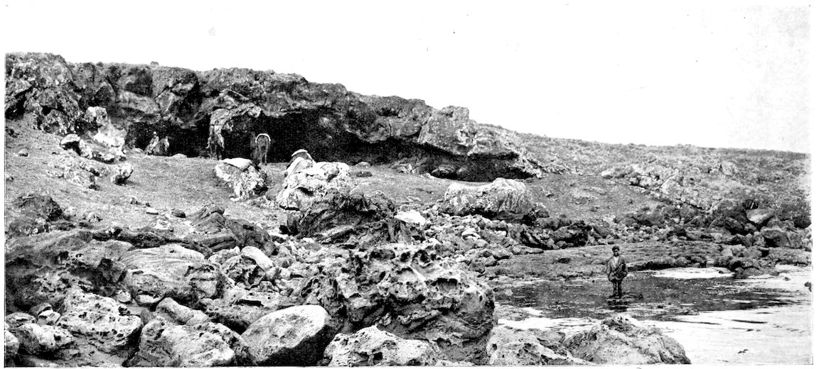71. I.e. “Cave of the great descent.” It is in the cliff of the eastern volcano beyond Marotiri, and is one of those which can be seen from the sea, but to which the path has disappeared.