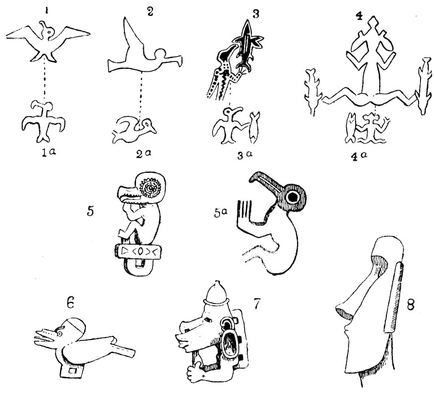 The Expedition, however, found other and unexpected matter to secure from oblivion—work which was of even greater, because of more pressing, importance. We had been informed that not only had all knowledge of the origin of the great works disappeared from the island, but that all memory of the early native culture before the advent of Christianity, which might possibly have thrown light upon them, was also gone. Happily this proved to be not altogether the case. When we arrived, such knowledge and tradition were expiring, but they were not altogether dead. It was our good fortune, in spite of language and other difficulties, to be able with patience to rescue at the eleventh hour much of high value, more especially that which points to a connection between the only recently expired bird cult and that of the images.