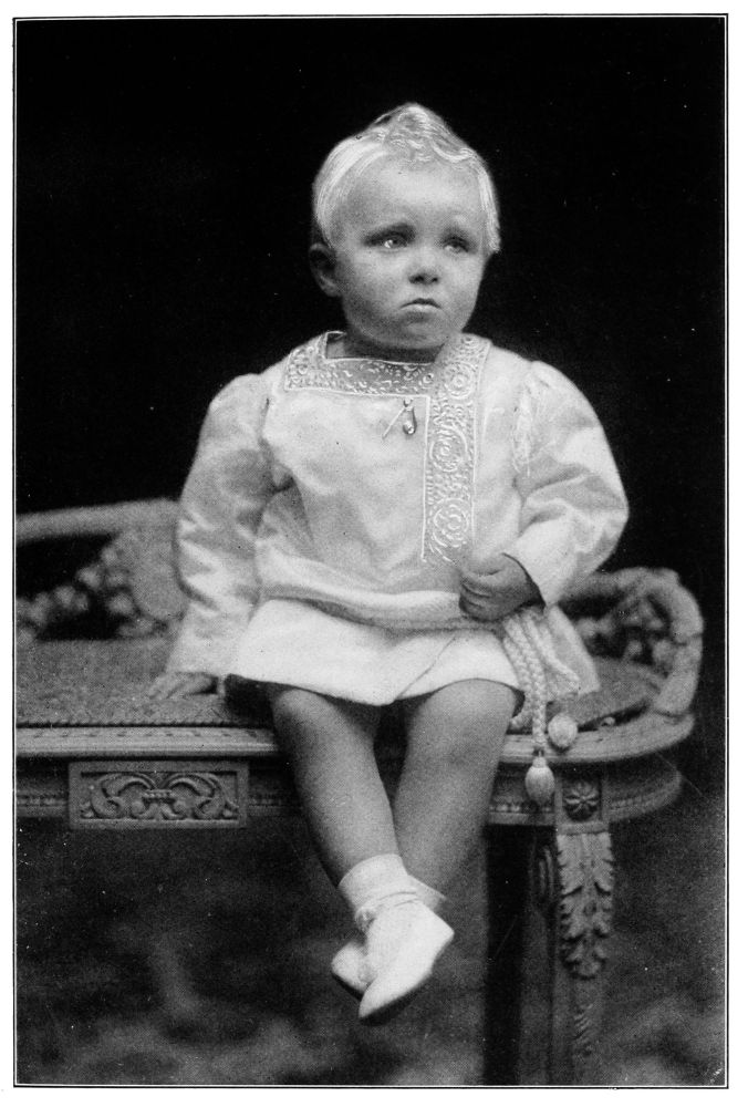 The marriage took place in 1896. Their first child, Yolanda, was born June 1st, 1901. Royal babies are never permitted to do with only two or three Christian names. They must perpetuate the names of grandfathers and grandmothers, and not infrequently of uncles and aunts and grand-uncles and grand-aunts besides. Thus the full name of the first little Italian Princess is Yolanda Margherita Milena Elizabeth Romana Maria! The next little Princess, born November 19th, 1902, was christened Mafalda Maria Elizabeth Anna Romana. On the 15th September, 1904, at the Château of Racconigi the boy was born. This was a momentous day for Elena and Victor Emmanuel, for the boy, if he lives, will eventually occupy the throne of his fathers, and the birth of a Crown Prince is a matter of utmost importance in the household of a Royal Family, and indeed in the