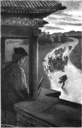 At sunset he again stood at the appointed place on the parapet, and with the first gathering of dusk a low but distinct call of "Hi-ho!" came up to him from the dark shadows at the foot of the lofty wall. His tiny message, folded in oiled silk and weighted with a bit of brick, already was attached to a thread, by which it was promptly lowered. Then came a slight jerk on the thread, and he pulled up the broken end to satisfy himself that the little packet really had been taken.