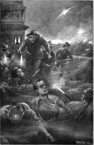 An hour later, in the dusk of evening, a little group of twenty Americans and as many British marines, all of them picked men, crouched on the lofty wall listening to the earnest but low-voiced words of Captain John Meyers, U.S.M.C., the gallant officer who was to lead the charge that would mean life or death to every foreigner then in the city of Pekin. He did not speak more than a minute, but what he said filled every man who heard him with the spirit of a hero. When he had finished he leaped the barricade and started down the wall, with every man of his little party striving to gain his side.