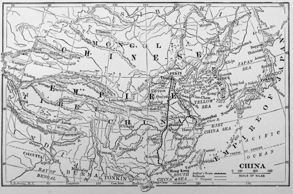 While travelling in China, and trying to gain the Chinese point of view, I met so many charming people, so many men of intelligence and liberal education, honorable, broad-minded, and devoted to the uplifting of their unhappy country, that I became exceedingly interested in their cause, and anxious to aid it. With this object in view I am striving, through the medium of a story, to present it to those young Americans who, in the near future, will be called upon to decide the ultimate fate of the great Middle Kingdom. With them, more than with any other people, even including the Chinese themselves, will rest the decision, whether China shall remain a nation, open to the unobstructed commerce of the world, or become a series of petty colonial possessions devoted only to the interests of their several ruling powers. That my young readers may be guided to a wise and just solution of this great problem, is the sincere hope of their friend,