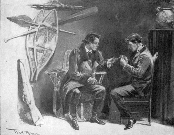 “Nonsense, Aunt Rue!” retorted the young athlete, at the same time picking up the slight figure of his anxious relative and swinging her, ruffled and indignant, into his father’s great leathern arm-chair; “if I’m not old enough and big enough now to take care of myself, I never shall be. Of course I know that I have been careless at times, and heedless, and all that. I can assure you, though, that my careless days are things of the past, and that hereafter no graybeard of your acquaintance will afford a more perfect model of prudence than your humble nephew. As for you! well, the mere idea of a dear little thing like you wandering[13] away out there among the Siwashes to protect a fellow of my size is prodigiously absurd. It surely is.”