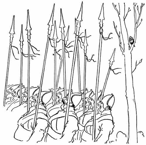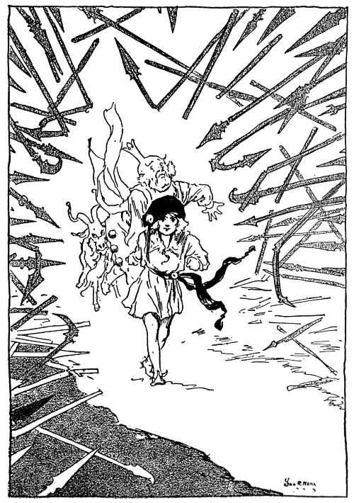 Many years before this story really begins, ten big boatloads of those fierce warriors of Regos and Coregos visited Pingaree, landing suddenly upon the north end of the island. There they began to plunder and conquer, as was their custom, but the people of Pingaree, although neither so big nor so strong as their foes, were able to defeat them and drive them all back to the sea, where a great storm overtook the raiders from Regos and Coregos and destroyed them and their boats, not a single warrior returning to his own country.