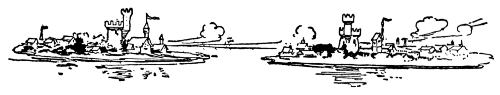 The Pingaree people never visited any other land but that of Rinkitink, and so there were few other lands that knew there was such an island. To the southwest was an island called the Isle of Phreex, where the inhabitants had no use for pearls. And far north of Pingaree—six days' journey by boat, it was said—were twin islands named Regos and Coregos, inhabited by a fierce and warlike people.