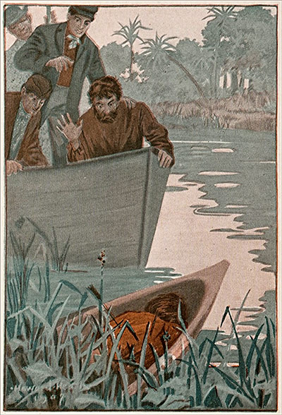So, with regret, we submitted to the inevitable. We bade Duncan Moit and his beautiful bride farewell and marched away through the forest till we came to the banks of the river, where the wreck lay in plain sight. A strong escort of silent natives watched us until we were all on board, and then they melted away and disappeared like ghosts.