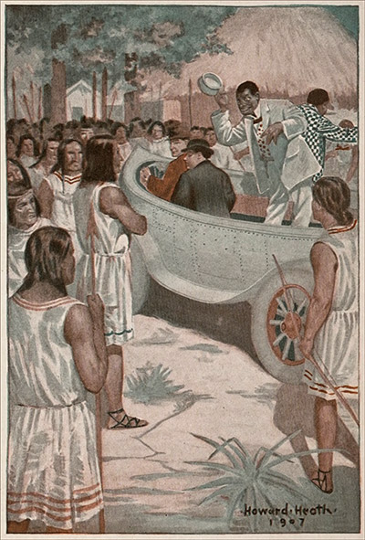 “It is my intention,” continued Moit, firmly, “to support the traditions of the Techlas. They must own nothing that will arouse the cupidity of the outside world, for only in this way will they be able to control their own territory. I am glad the audacious Tcharn is dead, and I will destroy all his pretty goldsmith work within the next few days. Also I shall have the valley of diamonds thoroughly searched and all the white pebbles cast into the sea. Therefore no temptation will exist for you or your fellows to come here again. Our laws will be rigidly maintained, and any strangers, white or black, who defy them will be severely punished.”