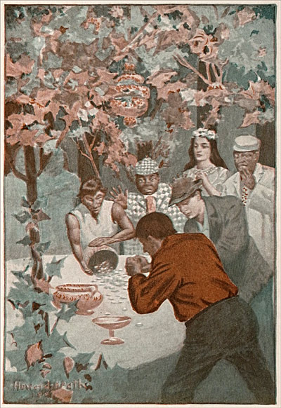 Bright and early next morning Ned Britton appeared at the edge of the forest leading his band of seamen to our rescue. We advanced eagerly to meet him and told him the news of the king’s destruction and of our altered standing with the new ruler of the San Blas. Ned had heard and felt the explosion even on the wreck, but thought that it must have been an earthquake.