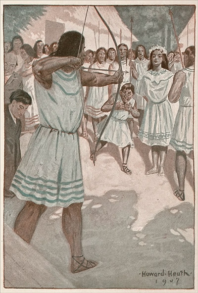 The newcomers were not regarded with much favor by the Indians, yet I thought that we all assisted greatly to lend dignity to the day’s ceremonies, which included the formal acknowledgment of Ilalah as ruler and lawgiver of the nation and her subsequent marriage—a most primitive rite—to the inventor, Duncan Moit. Ilalah’s husband was next adopted as a Techla, and then303 the excitement seemed to subside and the population settled down to business again.