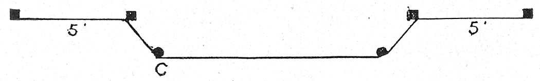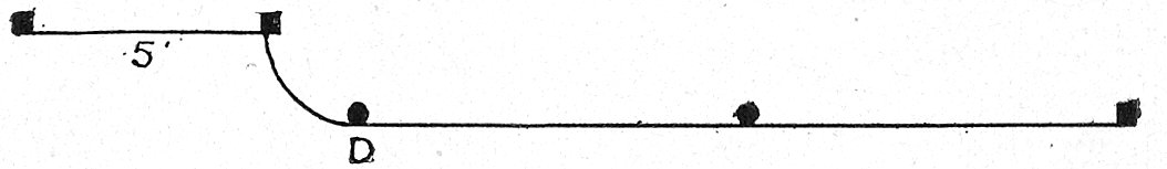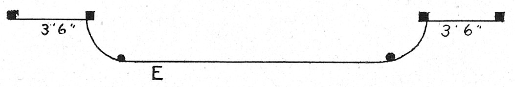 Diagram C shows one of the most popular arrangements of store fronts. This allows for a double entrance, with a broad expanse of window between. In wide fronts these entrances are double doors, in narrower fronts a single door is sufficient. Variations of this front which has bevelled entrances, are shown in diagrams E and F. The first has the semi-circular end panes, which are recommended as especially imposing, and the latter shows a square perfectly rectangular turn for the side panes. The advantage claimed for this method is that it attracts the attention of those approaching the window more quickly 10than will the slant or curve, but this does not appear likely unless the front projects beyond the line of the building.