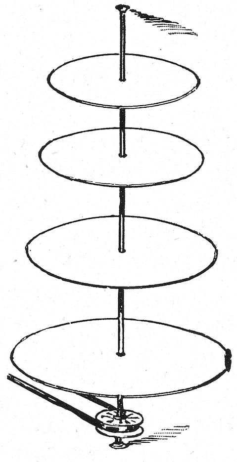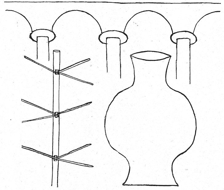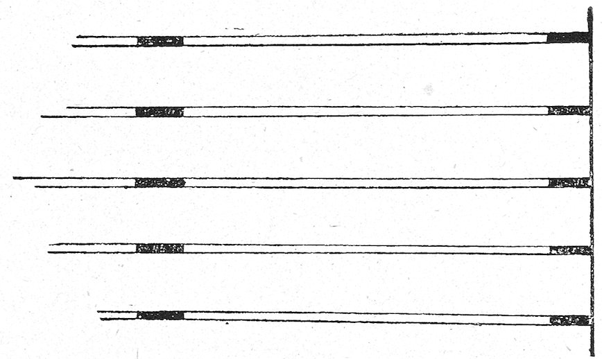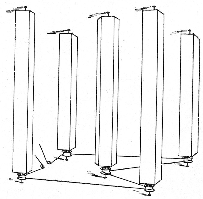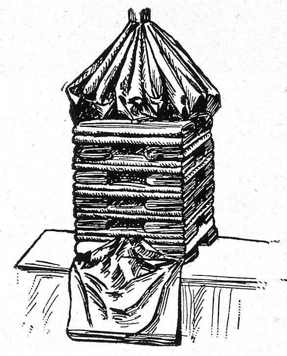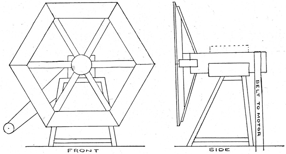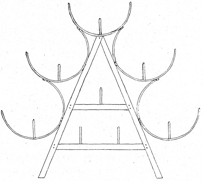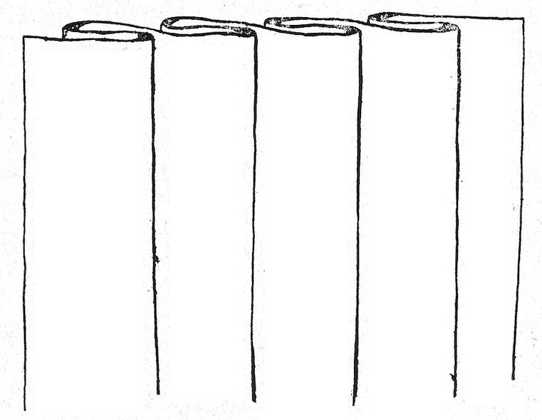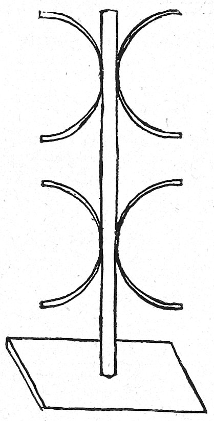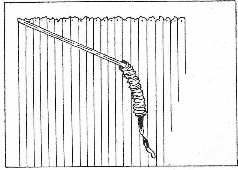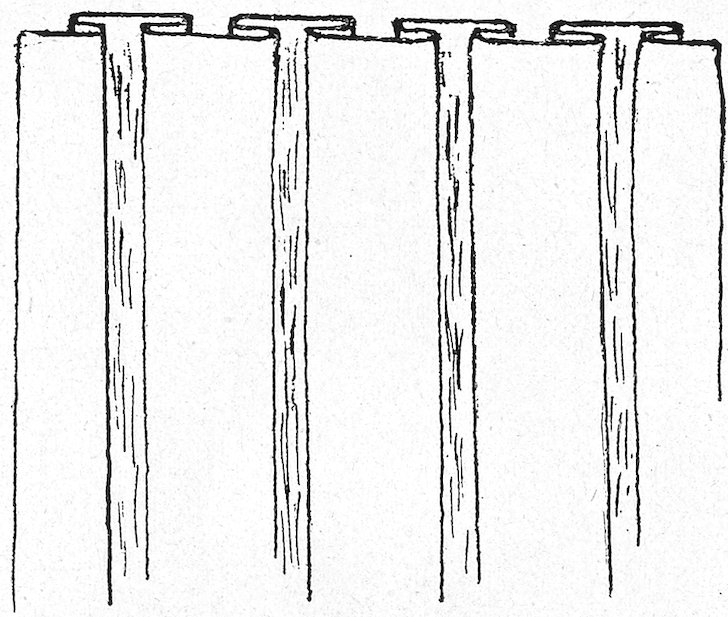 Fig. 3 shows how boards may be used without being perforated. Small pieces of wood are nailed on one edge of each board, say about one-eighth inch thick, so as to keep the boards about that distance apart.