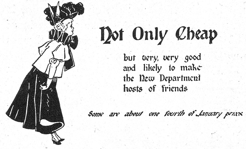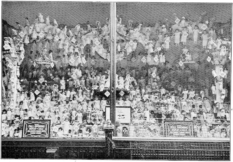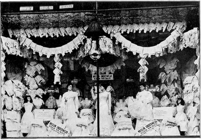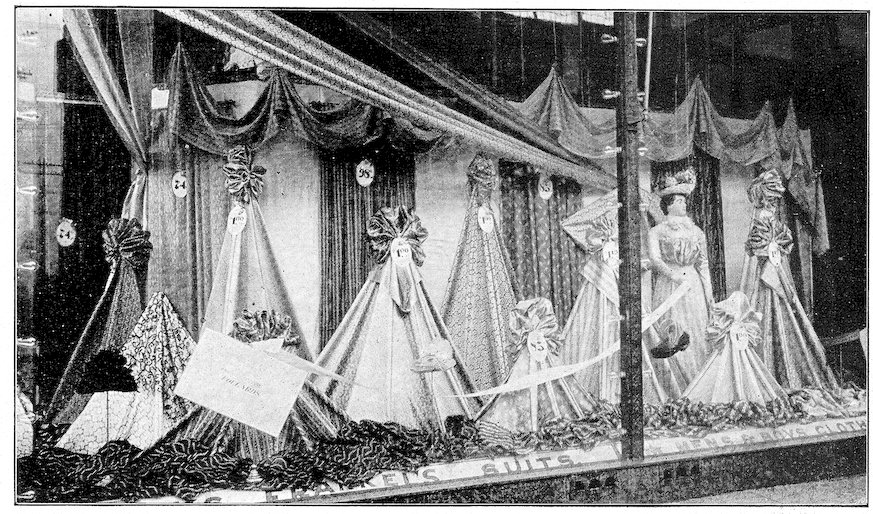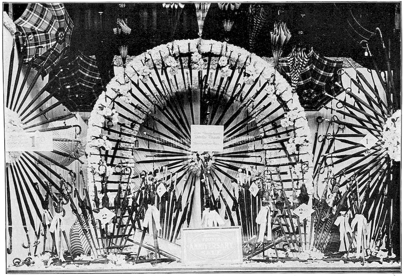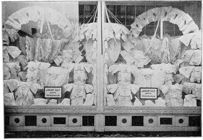 The mission of the show window is not to display unsaleable goods, but to sell goods. If you can’t make a pretty picture and sell goods at the same time let the picture go, but make a display that will sell the goods. But don’t forget that if you can make the window attractive enough to arrest the gaze of the passerby your goods are half sold. This may appear to you ambiguous at first, but a little thought will teach you never to lose sight of the fact that goods must be sold, and that an attractive window will help sell them. But a “picture window,” in which the value or utility of the goods is sacrificed to make the picture, is not art, but foolishness.