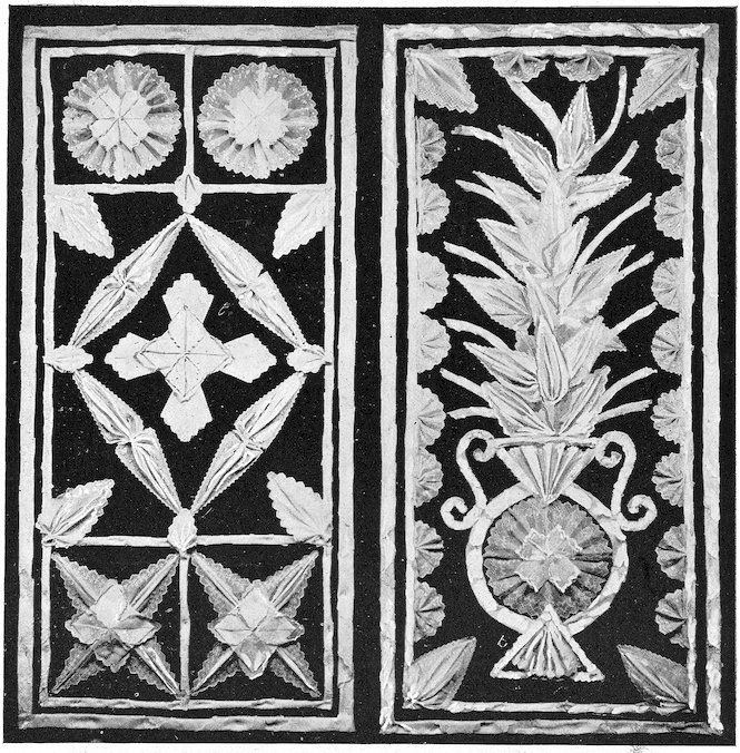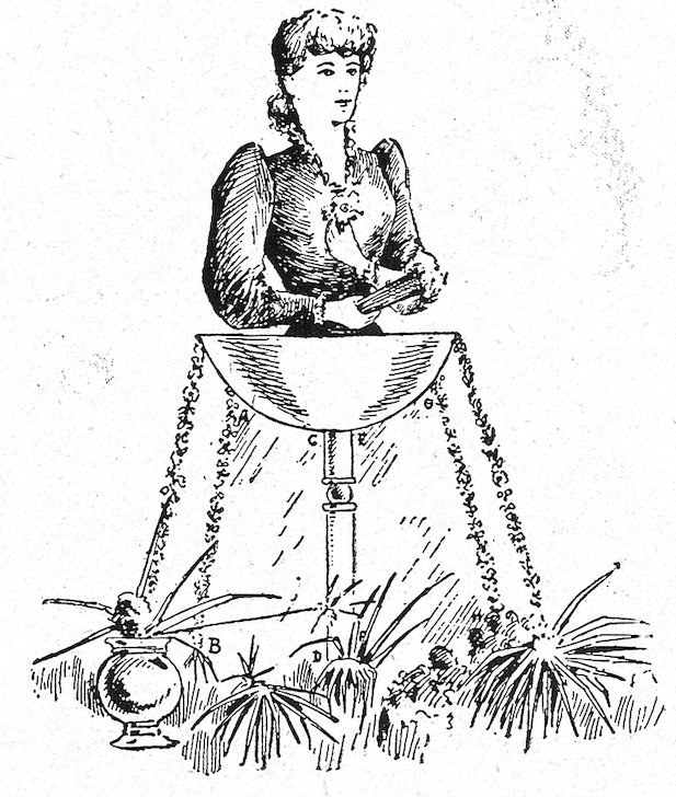 Against the solid backing brackets and shelves may be secured, their arrangement being altered as occasion demands. It also admits of tacking the draperies in a substantial manner, and there is a satisfaction in knowing your window is solid and that any fragile articles displayed are perfectly safe.