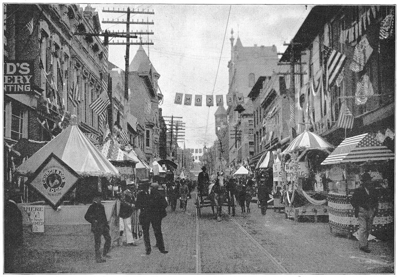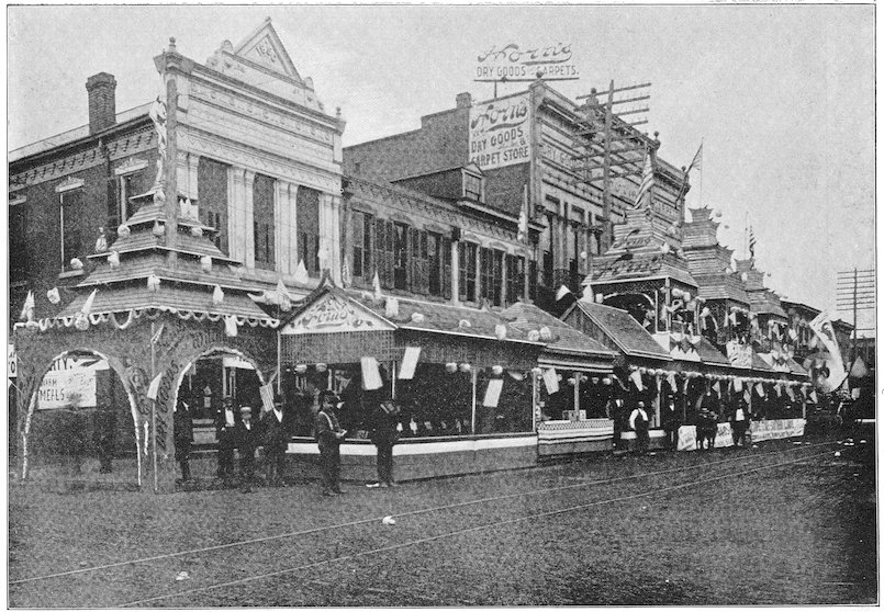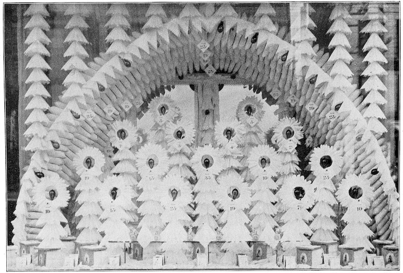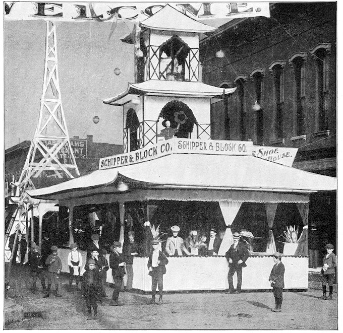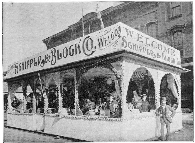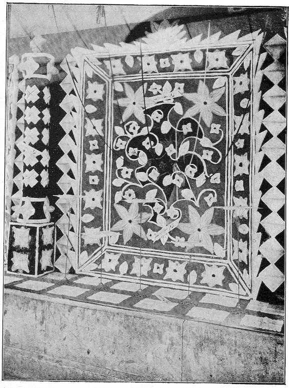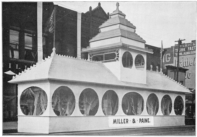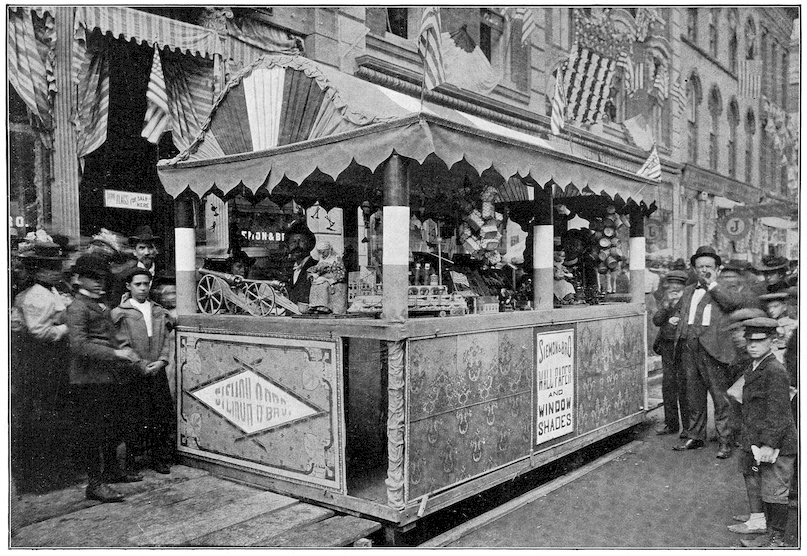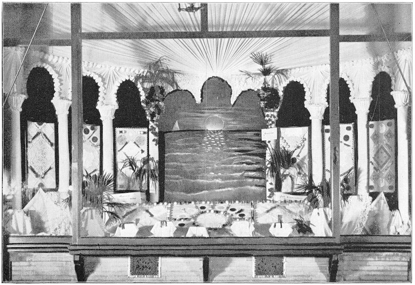 In old Bagdad arose the custom of open booths built before the entrances of houses, wherein was attractively displayed the merchandise offered for sale. This custom is still extensively followed in Eastern countries.