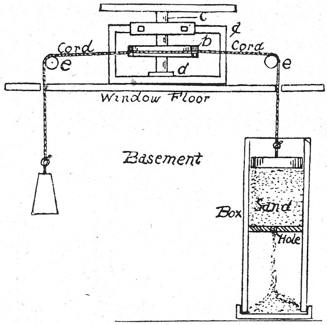 The floor of the window should be made of boards, perforated and made to fit in snugly without fastening down, so they can be taken up occasionally to clean out the dust that will accumulate in time.