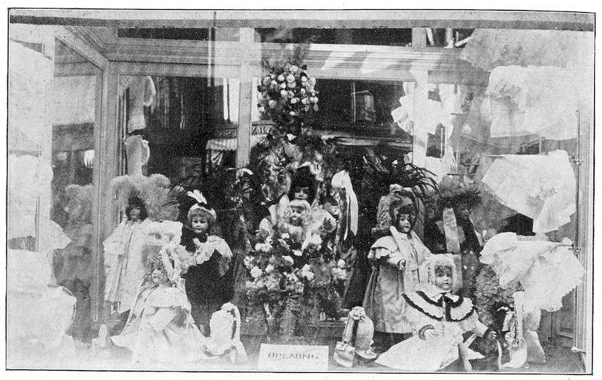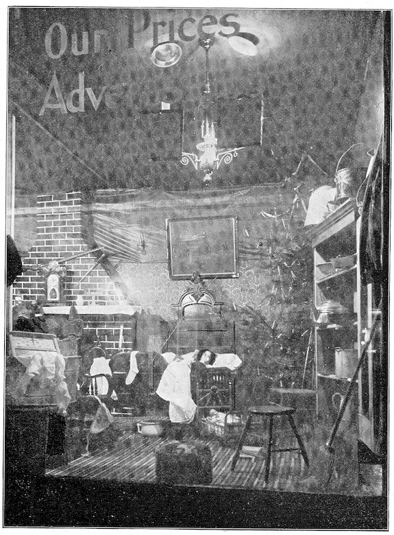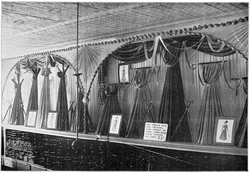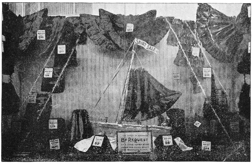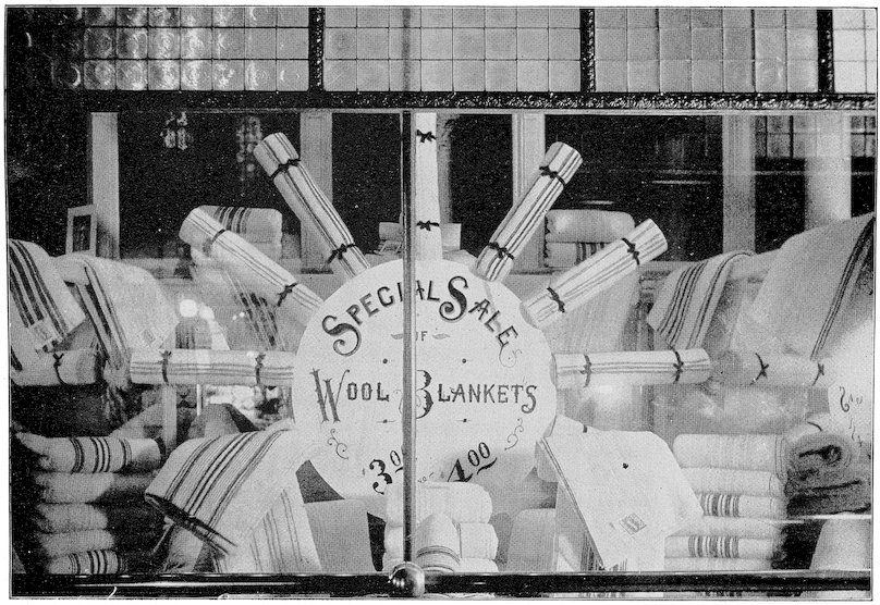 These are the three grades—the three developments in advertising. The street crier, the newspapers, the show window. The last mode of inducing trade is the modern one, and therefore the best. More goods are sold through window display than through newspaper advertising. It is more direct. The newspaper advertisement says: “We have goods to sell.” The show window says: “Here they are!”