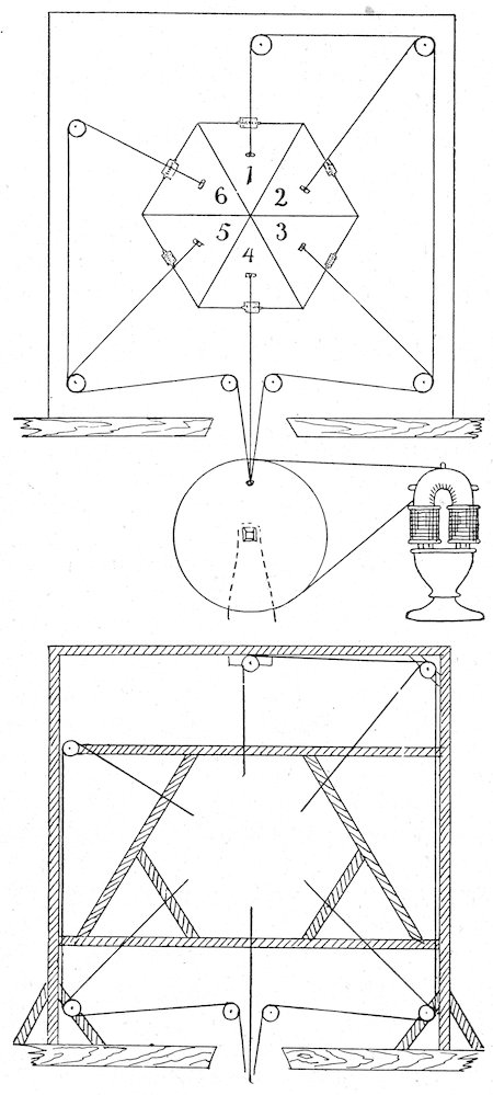 (1) An electric fan kept constantly in motion in a corner of the window is said to avoid frosting by keeping the atmosphere in circulation, and thus preventing condensation upon the surface of the glass. In a large window there should be two fans, in opposite corners, and these may be easily concealed from view.