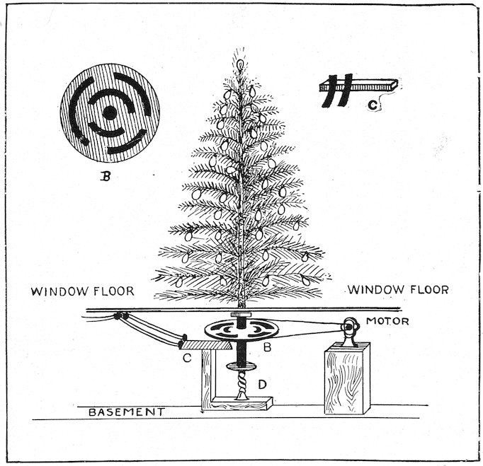(2) Electric Heaters.—As almost every store is now provided with electric light service, and electric heaters can be purchased in all sizes on the open market, the interest in this new application of electric heating is universal. All that is necessary is to place a small electric heater in the window in any concealed position, and to connect it with the lighting mains.