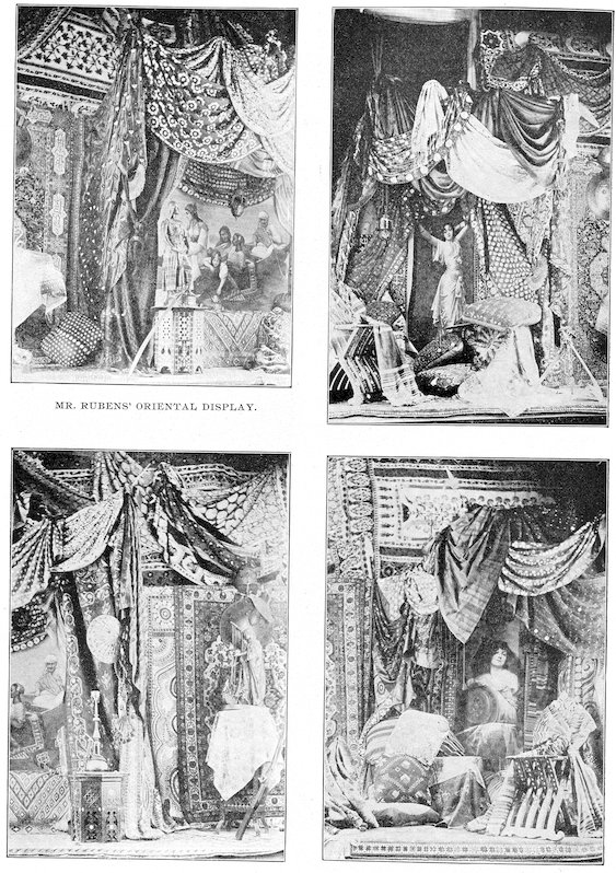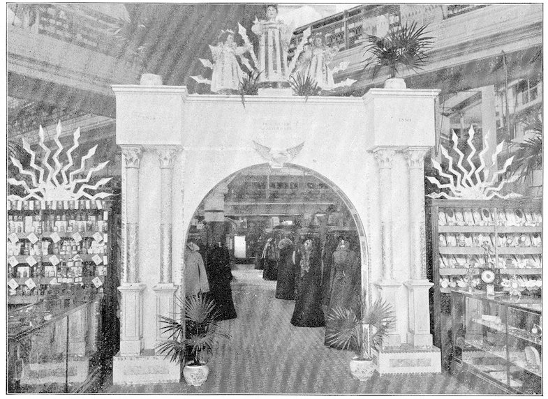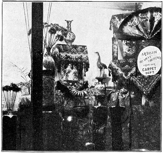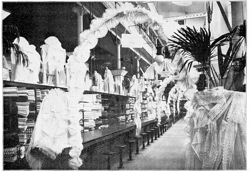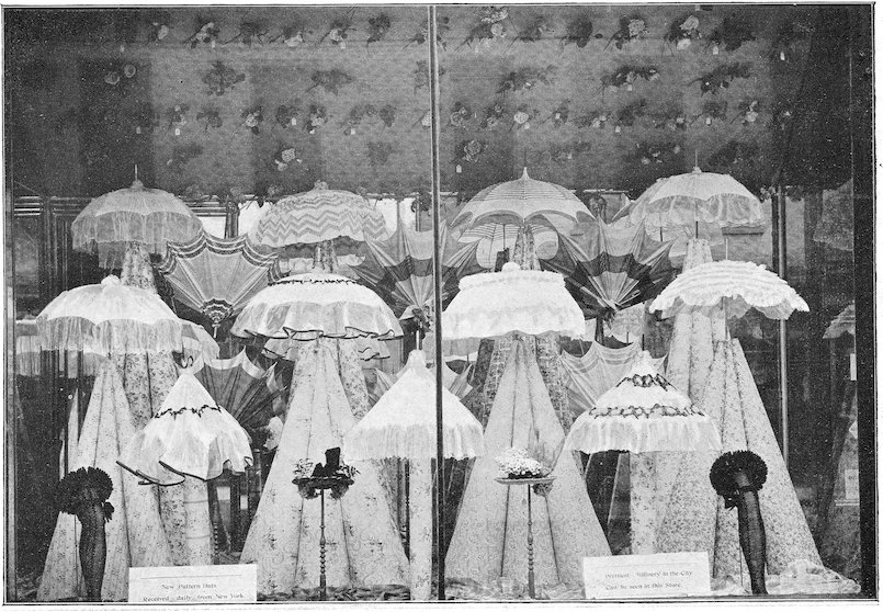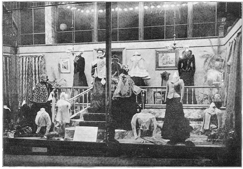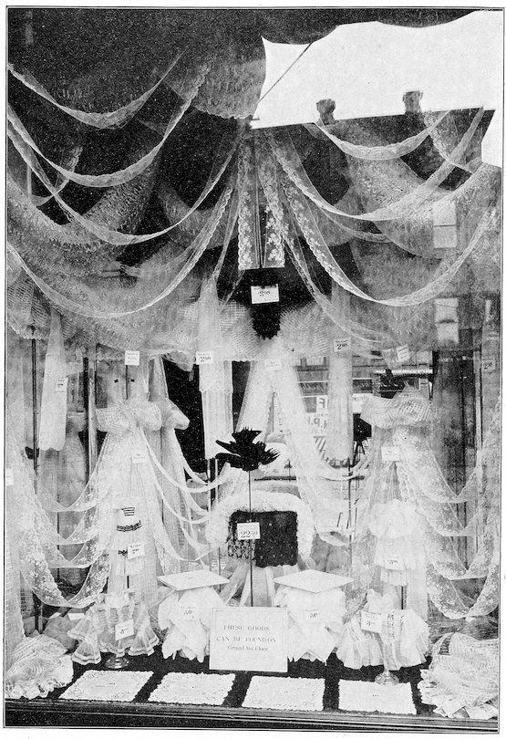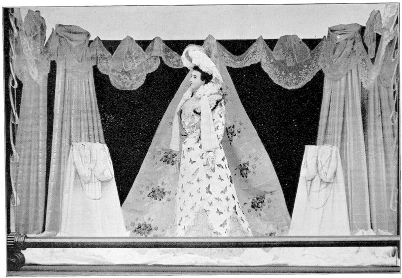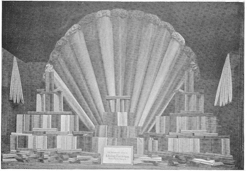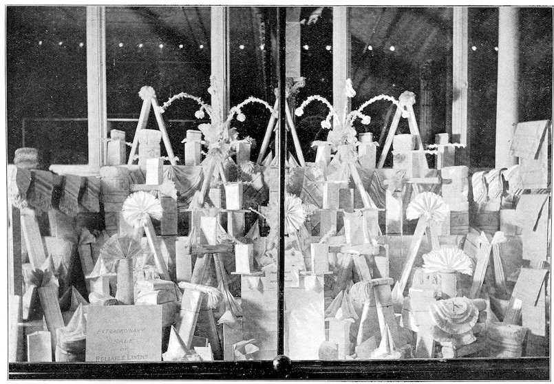 The peddlars, or packmen, of ancient days, who were the first recognized merchants, realized fully the advantage of displaying their wares before prospective customers. Gaining entry to a castle, a palace, or a mansion, the packman spread his goods upon the floor to best advantage and then awaited patiently while the assembled bevy of women gazed enraptured upon the treasures at their feet. If he could not obtain permission to open his pack his visit was fruitless of result.