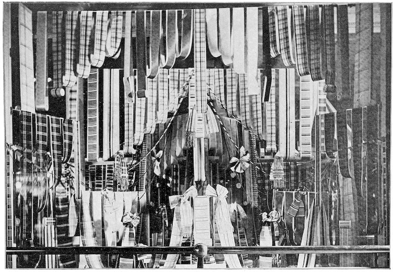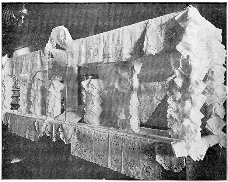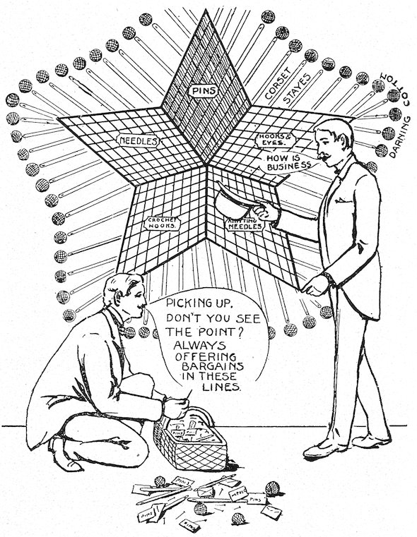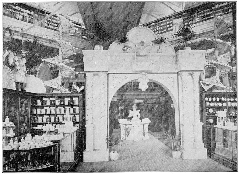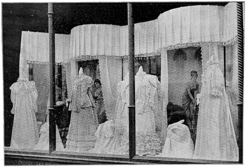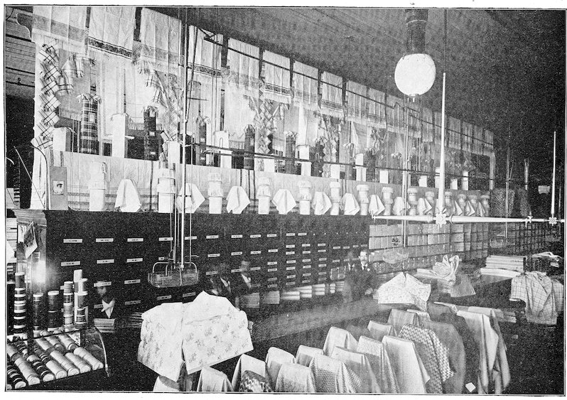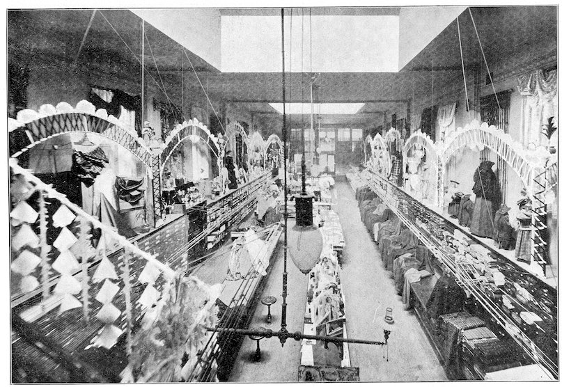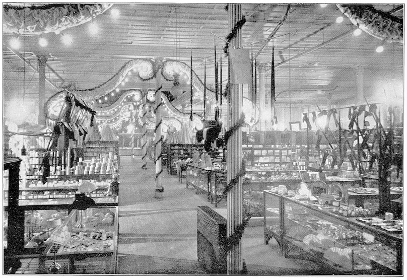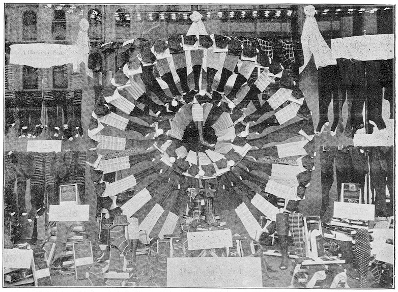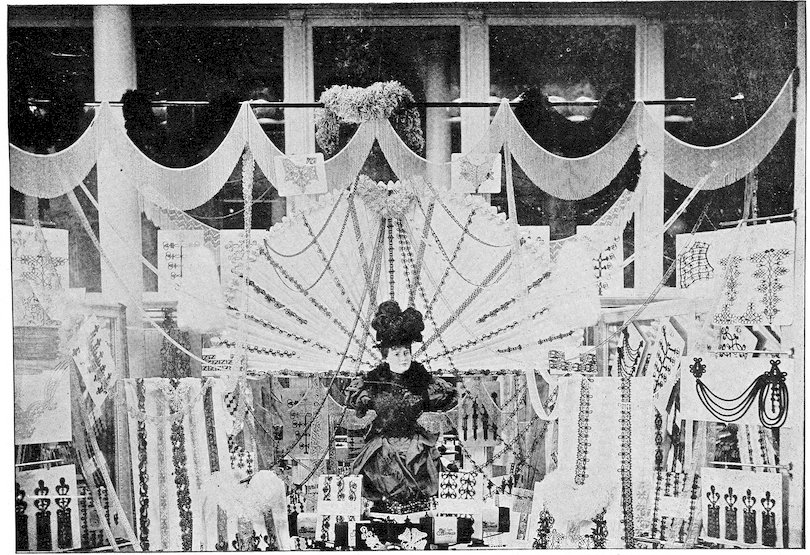 The peddlars, or packmen, of ancient days, who were the first recognized merchants, realized fully the advantage of displaying their wares before prospective customers. Gaining entry to a castle, a palace, or a mansion, the packman spread his goods upon the floor to best advantage and then awaited patiently while the assembled bevy of women gazed enraptured upon the treasures at their feet. If he could not obtain permission to open his pack his visit was fruitless of result.