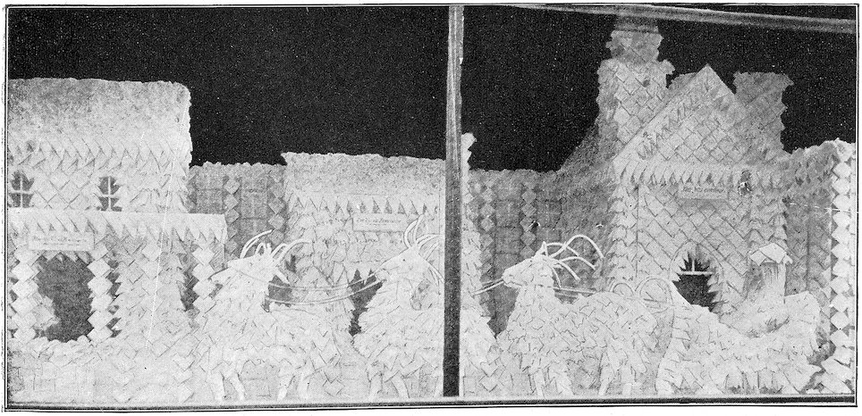 One of the greatest troubles the window trimmer has to contend with is the lack of time necessary to do complete and perfect work. The house wants the window changed, and wants it immediately, ignoring the fact that it requires time, both to take out the old and put in the new display, and on that account it is absolutely necessary that a great deal of the work should be done in the workshop before going into the window at all. You may find a picture or model that would make a good subject for a novelty window of certain kinds of goods, and it could be worked out in fine style if only sufficient time were given for detail work, that is, making all of the different parts of the subject in their proper place, and leaving out of the work not the slightest detail necessary to make the finished work identically like the picture or model. This would, necessarily, require considerable time and labor, but when the trimmer gets advanced in the work he will become so interested that he will not be satisfied until he has it complete in detail.