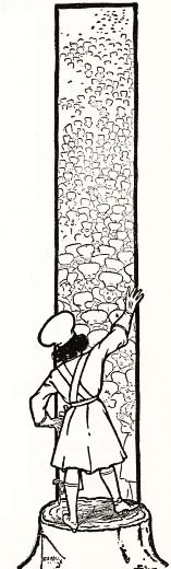 But you must not suppose he worked all the time, for he felt that would be bad for him. When sent to the forest Tip often climbed trees for birds' eggs or amused himself chasing the fleet white rabbits or fishing in the brooks with bent pins. Then he would hastily gather his armful of wood and carry it home. And when he was supposed to be working in the corn-fields, and the tall stalks hid him from Mombi's view, Tip would often dig in the gopher holes, or—if the mood seized him—[Pg 3]lie upon his back between the rows of corn and take a nap. So, by taking care not to exhaust his strength, he grew as strong and rugged as a boy may be.