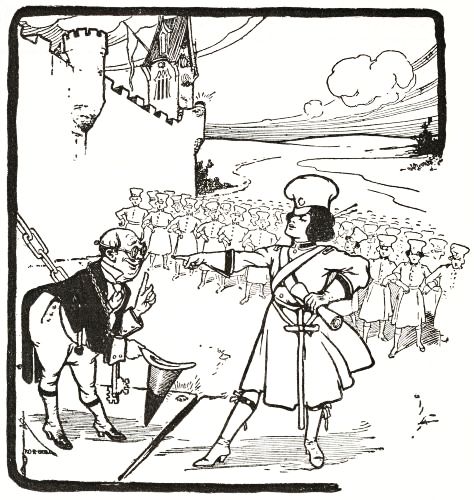 So when her soldiers, who spent most of their time making fudge in the palace kitchens, counseled Jinjur to resist, she listened to their foolish prattle and sent a sharp defiance to Glinda the Good and the Princess Ozma. The result was a declaration of war, and the very next day Glinda marched upon the Emerald City with pennants flying and bands playing,[Pg 274] and a forest of shining spears sparkling brightly beneath the sun's rays.