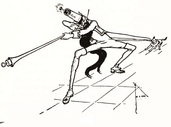 Angrily she raised her stick to smash in the grinning pumpkin head of the dummy; but a sudden thought made her pause, the uplifted stick left motionless in the air.