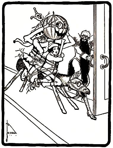 "Then," replied the Gump, "please take me to pieces. I did not wish to be brought to life, and I am greatly ashamed of my conglomerate personality. Once I was a monarch of the forest, as my antlers fully prove; but now, in my present upholstered condition of servitude, I am compelled to fly through the air—my legs being of no use to me whatever. Therefore I beg to be dispersed."