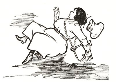 Now, at a word from the Princess, the queer Thing they had called the Gump flopped its palm-leaf wings and rose into the air, carrying the party of adventurers high above the walls. They hovered over the palace, and soon perceived Jinjur reclining in a hammock in the courtyard, where she was comfortably reading a novel with a green cover and eating green chocolates, confident that the walls would protect her from her enemies. Obeying a quick command, the Gump alighted safely in this very courtyard, and before Jinjur had time to do more than scream, the Captain and three soldiers[Pg 276] leaped out and made the former Queen a prisoner, locking strong chains upon both her wrists.