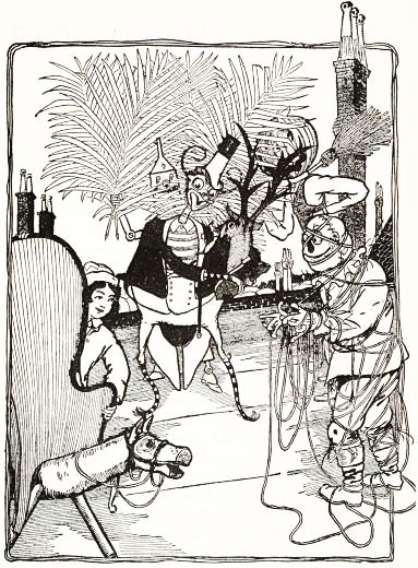 "It isn't a very big Kingdom," said he to Ozma, "but for that very reason it is easier to rule; and I have called myself an Emperor because I am an Absolute Monarch, and no one interferes in any way with my conduct of public or personal affairs. When I get home I shall have a new coat of nickel plate; for I have become somewhat marred and scratched lately;[Pg 280] and then I shall be glad to have you pay me a visit."