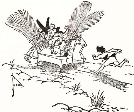 "Oh, let Jinjur be the Queen!" exclaimed Tip, ready to cry. "I want to stay a boy, and travel with the Scarecrow and the Tin Woodman, and the Woggle-Bug, and Jack—yes! and my friend the Saw-Horse—and the Gump! I don't want to be a girl!"