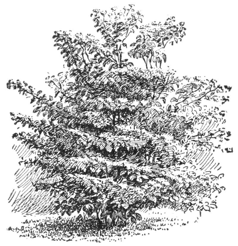 Examine any tree to determine under what advantages or disadvantages any of the limbs may live. Examine similarly the different plants in a garden row (Fig. 3); or the different bushes in a thicket; or the different trees in a wood.