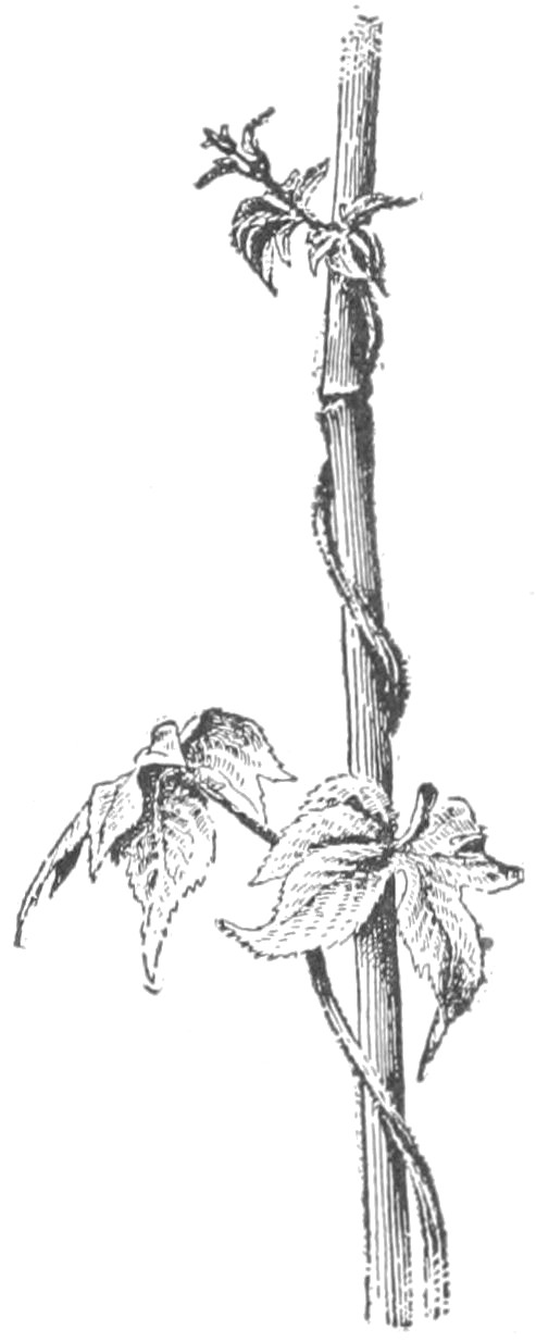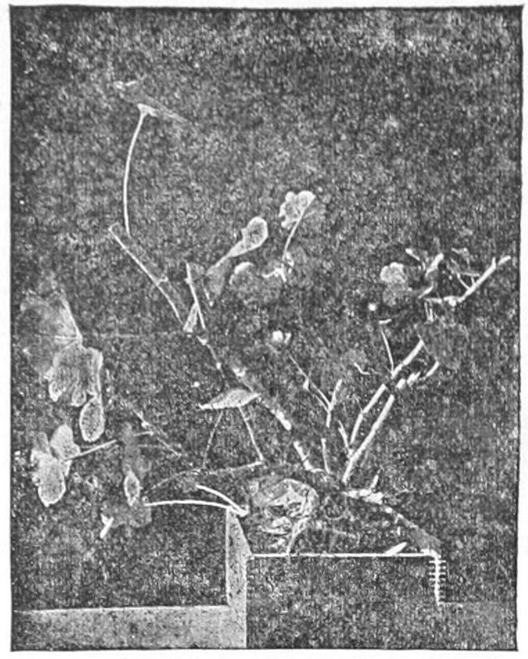 Plants adapt themselves to light by growing toward it (Fig. 4); or by hanging their leaves in such position that they catch the light; or, in less sunny places, by expanding their leaf surface, or by greatly lengthening their stems so as to overtop their fellows, as do trees and vines.