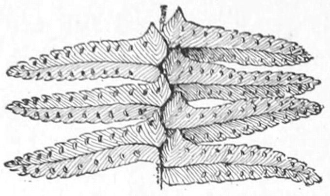 pinnate. Feather-like; said of leaves in which the veins strike off from a continuing midrib, or in which the leaflets are arranged in a similar order.