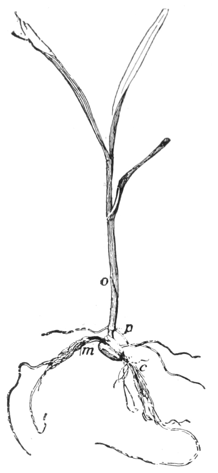 Suggestions.—The first fact that the pupil should acquire about plants is that no two are alike. The way to apprehend this great fact is to see a plant accurately and then to compare it with[3] another plant of the same species or kind. In order to direct and concentrate the observation, it is well to set a certain number of attributes or marks or qualities to be looked for. 1. Suppose any two or more plants of corn are compared in the following points, the pupil endeavouring to determine whether the parts exactly agree. See that the observation is close and accurate. Allow no guesswork. Instruct the pupil to measure the parts when size is involved.