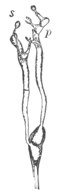 style. The stalk between the ovary and the stigma; sometimes not present.