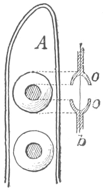 stomate, stoma (plural stomates or stomata). The openings on leaves and green parts through which gases pass; diffusion-pores or “breathing-pores.”
