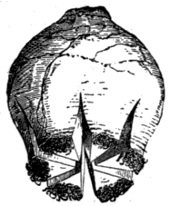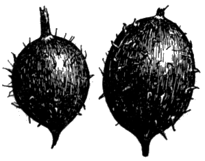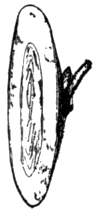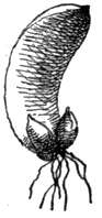 The germination of bony seeds is often facilitated by filing or cutting away the shell very carefully near the germ, or by boring them. A bored nelumbium seed is shown in Fig. 7.