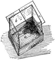 To prevent too rapid drying out, the soil should be firmly pressed about the seeds. The pot or box should be given a shady place, or some covering may be applied to check evaporation. A pane of glass is often placed over the box, being tilted a little at intervals to allow of ventilation and to prevent the soil from becoming soggy or “sour.” A seed-case, with a glass cover, as shown in Fig. 2, is neat and handy in the treatment of small seeds. A thin covering of fine moss is sometimes given, or a newspaper may be thrown over the soil.