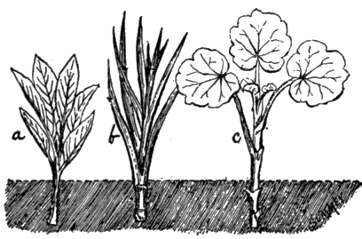 Preparatory Treatment of Seeds.—Many seeds demand some treatment preparatory to sowing. Nearly all hard and bony seeds fail to germinate, or at least germinate very irregularly, if their contents are allowed to become thoroughly dry and hard. The shells must also be softened or broken in many cases before the embryo can grow. Nature treats such seeds by keeping them constantly moist under leaves or mold, and by cracking them with frost. This suggests the practice known to gardeners as stratification, an operation which consists in mixing seeds with earth and exposing them to frost or to moisture for a considerable time.
