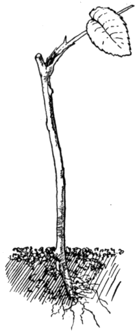 Partial substitutes for stratification are soaking and scalding the seeds. Soaking may be advantageously practiced in the case of slow and hard seeds, which are not enclosed in bony shells, and which have been allowed to become dry. Seeds of apple, locust and others of similar character, are sometimes treated in this manner. They are soaked for 24 or 36 hours, and it is commonly supposed that if they are exposed to a sharp frost in « 18 » the meantime, better results will follow. While still wet the seeds are sown. Scalding water may be poured over locust and other seeds to soften their covering. But seeds should not be boiled, as sometimes recommended.
