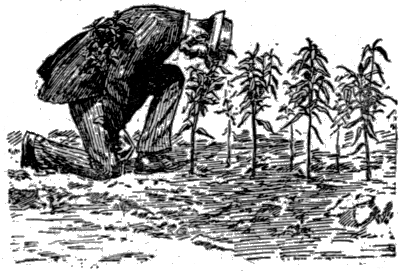 To prevent drying in out-door culture, it is important that the earth be well firmed over the seeds. Walking on the row, placing one foot directly ahead of the other, is usually the most expeditious and satisfactory operation, at least with large seeds. « 12 » Or the earth may be firmed with a hoe or the back of a spade, or a board may be placed upon the row and then be thoroughly settled by walking over it. In the sowing of celery and other small and slow seeds, it is a frequent practice to leave the board on the row until the seeds appear in order to hold the moisture. This is a doubtful expedient, however, for the young plants are apt to be quickly dispatched by the sun when the board is removed. If the board is employed, it should be raised an inch or two from the ground as soon as the plants begin to appear. But the shade of the board is too dense and plants do not grow stocky under it. It is better to use brush or lath screens if protection is desired; or fine litter, if free from weed seeds, may be used. In most cases, however, screens will not be needed by celery and similar seeds if the ground is in the proper condition and is well firmed at planting time. It is always advisable, nevertheless, to place the beds for slow and small seeds where they can be watered occasionally.